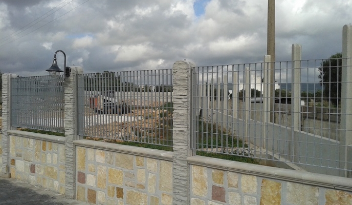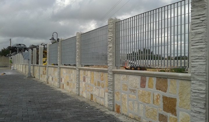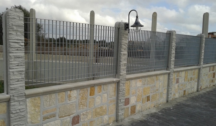 realizzazione di recinzione con pannelli prefabbricati in pietra ( tranciato trani ) con sovrapposizione di pannelli di tipo orsogrill.