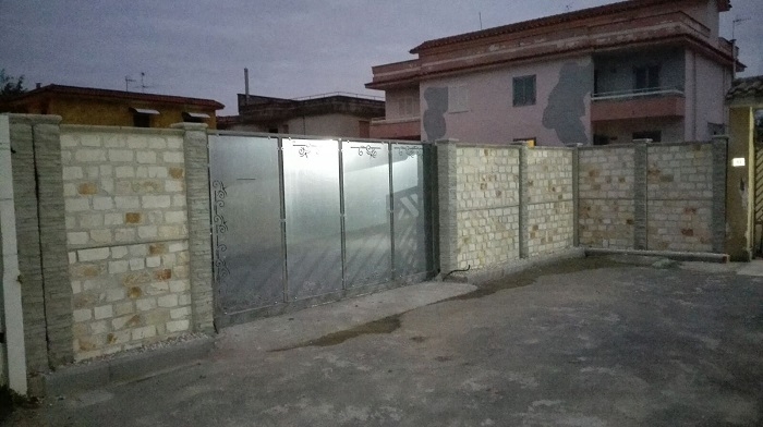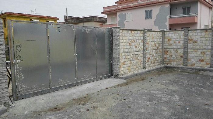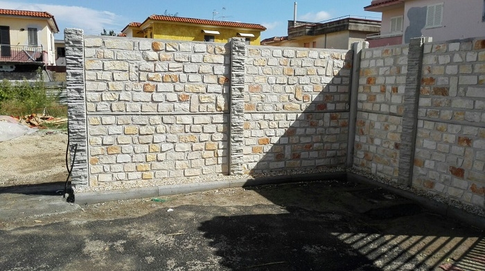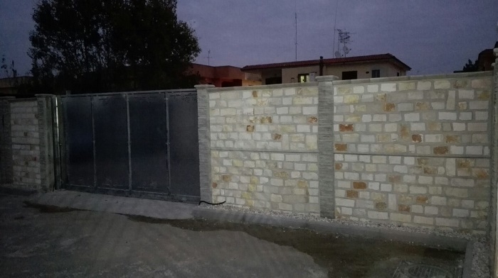 recinzione realizzata con pietra di tipo ( tranciato 10 a correre) con due pannelli sovrapposti x un altezza di 2MT.