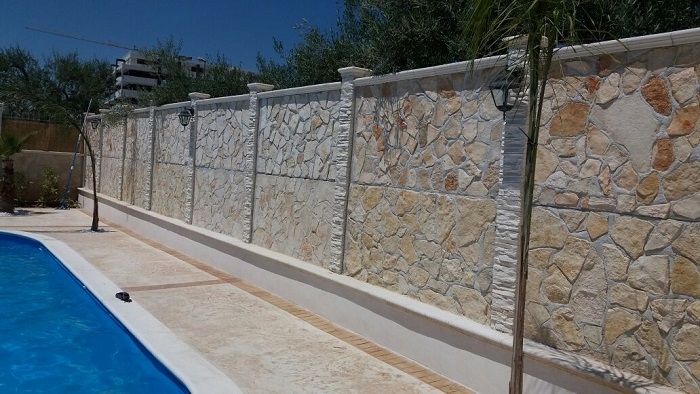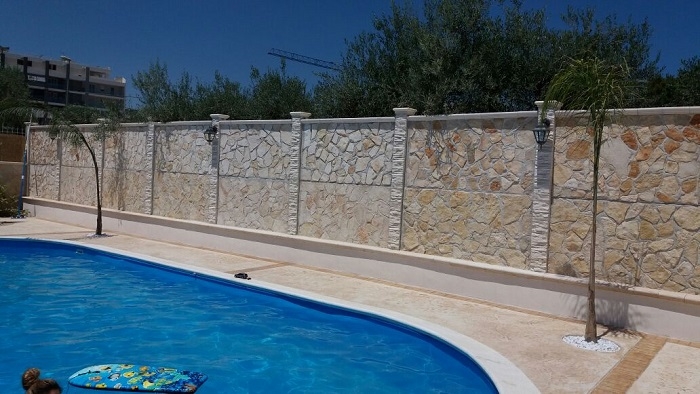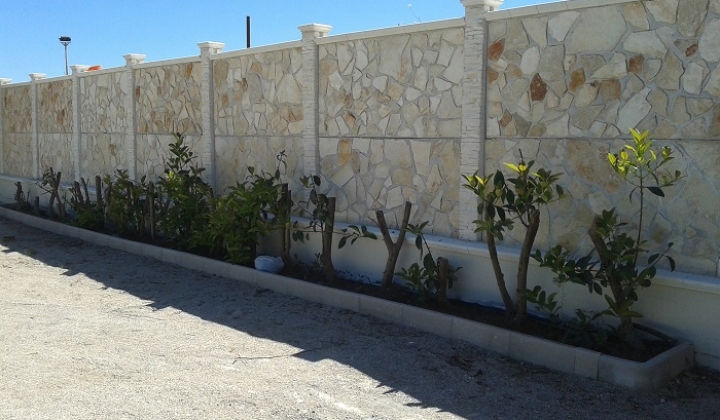 Realizzazione di recinzione con panneli monofacciali 200x100 con pilastri beige.
