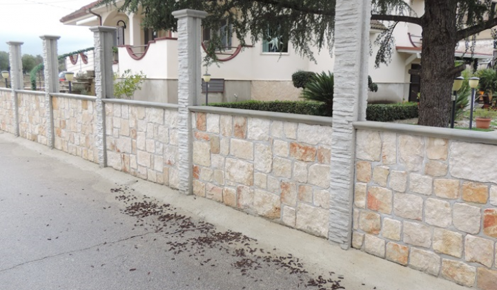 recinzione realizzata con pietra di tranciato grezzo bifacciale con pilastri grigio